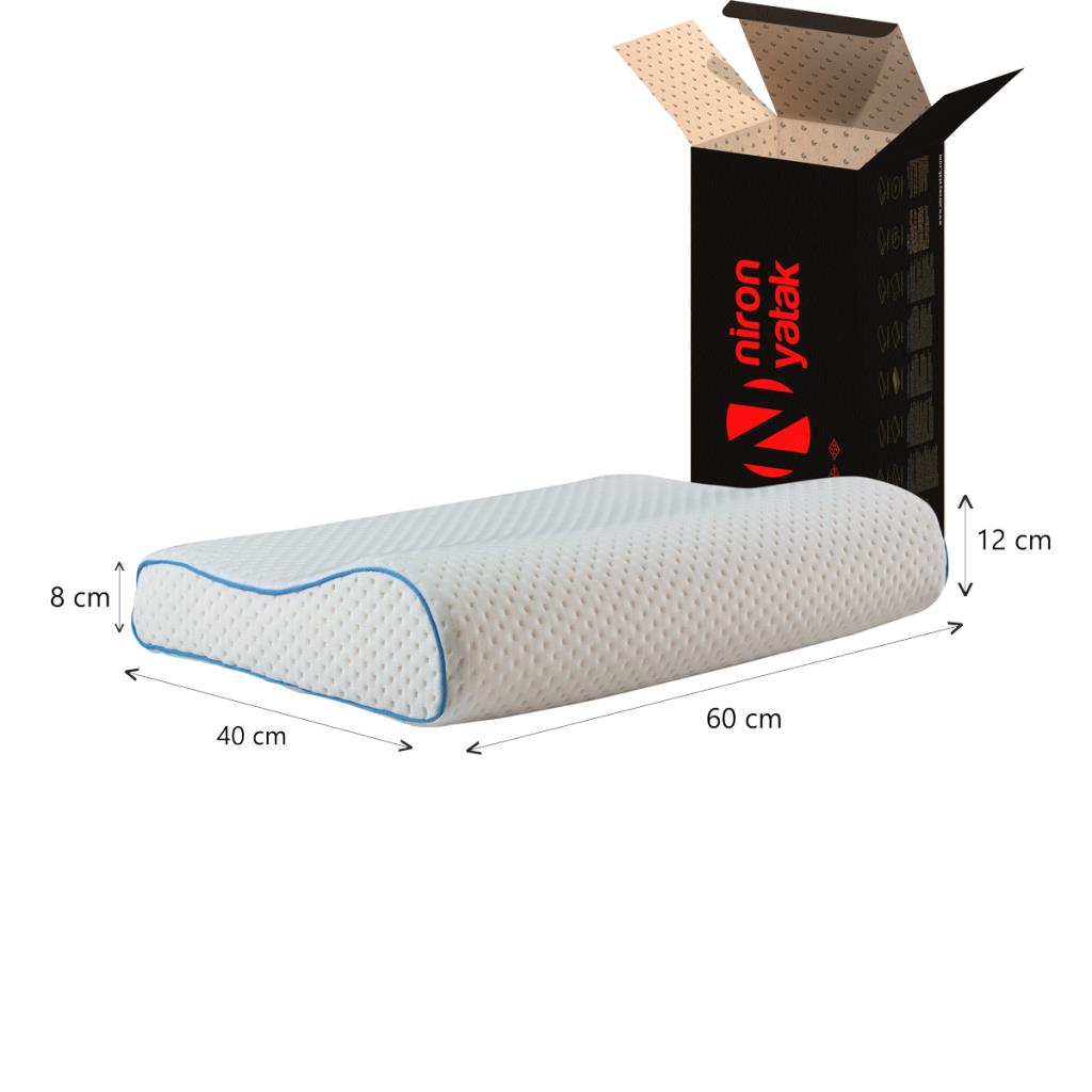 Niron Cool Therapy Jel Parçacıklı Boyun Destekli Visco Yastık yoğunluğu ve duyarlılığı yüksek elastik visco süngerden üretilmiş olup kılıfı için gözenekli pamuklu örme kumaş kullanılmıştır.